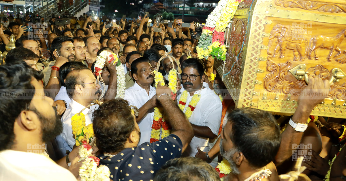 ശബരിമല: ആറന്മുള പാർഥസാരഥി ക്ഷേത്രത്തിൽനിന്നും തങ്ക അങ്കി ഘോഷയാത്രയായി സന്നിധാനത്ത് എത്തി. തുടർന്ന് തങ്കഅങ്കി ചാർത്തിയുള്ള മഹാ ദീപാരാധന നടന്നു. മണ്ഡലകാലത്തിനു സമാപനം കുറിച്ച് തങ്ക അങ്കി ചാർത്തിയുള്ള മണ്ഡല പൂജ ബുധനാഴ്ച നടക്കും. തങ്ക അങ്കി വിഭൂഷിതനായ അയ്യപ്പസ്വാമിയെ ദർശിച്ച നിർവൃതിയിലാണ് ഭക്തർ. കഴിഞ്ഞ ശനിയാഴ്ചയാണ് ആറന്മുള പാര്ഥസാരഥി ക്ഷേത്രത്തില്നിന്ന് തങ്ക അങ്കി വഹിച്ചുകൊണ്ടുള്ള ഘോഷയാത്ര ആരംഭിച്ചത്. ബുധനാഴ്ച രാവിലെ 10.30-നും 11.30-നുമിടയ്ക്കാണ് മണ്ഡലപൂജ. 27-ന് അടയ്ക്കുന്ന നട, മകരവിളക്ക് ഉത്സവത്തിനായി 30-ന് അഞ്ചു മണിക്ക് തുറക്കും. തങ്ക അങ്കി ചാര്ത്തിയ അയ്യപ്പനെ കാണാന് വലിയ തിരക്കാണ് സന്നിധാനത്ത് അനുഭവപ്പെടുന്നത്. 41 ദിവസത്തെ മണ്ഡലകാലത്തിനു പരിസമാപ്തി കുറിച്ചു മണ്ഡല പൂജ ബുധനാഴ്ച നടക്കും. മകരവിളക്കിന് സ്പോട് ബുക്കിങ് 80,000 ആക്കുമെന്ന് ദേവസ്വം ബോർഡ് പ്രസിഡന്റ് പി എസ് പ്രശാന്ത് പറഞ്ഞു.